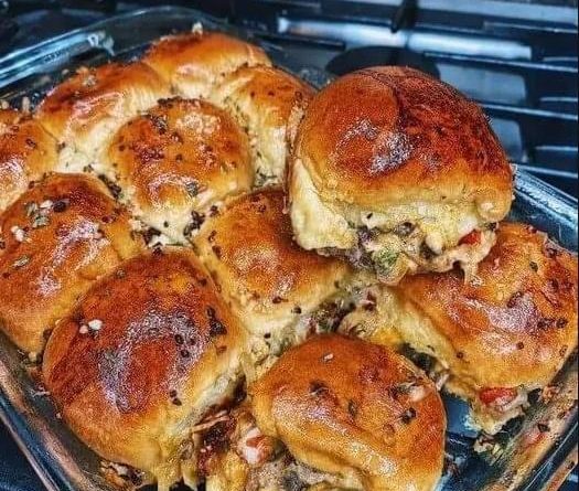 Într-o tigaie mare, încălziți uleiul și adăugați ceapa și ardeiul verde. Gatiti la foc mediu-mare, amestecand din cand in cand, pana cand ardeii si ceapa se inmoaie. Adăugați apoi friptura tocată, sosul Worcestershire, pudra de usturoi, sare și piper. Gătiți friptura, rupând-o cu două furculițe pentru a împiedica friptura să se lipească. Gatiti pana friptura nu mai este rosie. Pune vasul deoparte. Tăiați chiflele în jumătate pe orizontală, păstrând intact pachetul de 12 chifle. Așezați pe o foaie de copt. Întindeți amestecul de friptură uniform pe jumătatea inferioară a chiflelor. Acoperiți cu felii de brânză și jumătate de chifle. Într-un castron mic, combinați untul topit, cimbru uscat și sosul Worcestershire. Ungeți cu generozitate amestecul de unt peste vârfurile chiflelor. Puneți glisoarele în cuptor și coaceți timp de 17 până la 20 de minute sau până când vârfurile chiflelor sunt aurii și brânza s-a topit. Bucurați-vă!