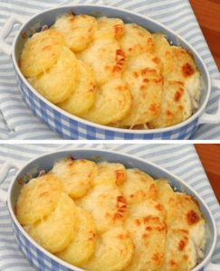 Delicios gratin de cartofi cu brânză și șuncă gătită: o rețetă reconfortantă de savurat.