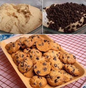 Ingredientes: 2 1/4 tazas de harina de todo uso 1 cucharadita de bicarbonato de sodio 1 cucharadita de sal 1 taza de mantequilla sin sal, ablandada 3/4 taza de azúcar granulada 3/4 taza de azúcar morena clara, empacada 1 cucharadita de extracto de vainilla 2 huevos grandes 2 tazas de chispas de chocolate semidulce