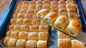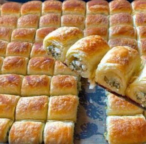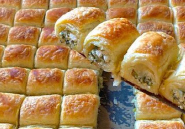 Rápidos buré-pasteles que huelen deliciosamente y sus capas son crujientes y se doblan.