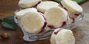 500 g de margarin (sau 250 g de margarin și 250 ml de ulei) 250 g de zahăr pudră 1 lămâie întreagă 2 plicuri de zahăr vanilat 100 g de nuci aproximativ 1 kg de făină gem de caise puțin zahăr pudră