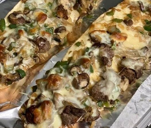 Cómo Hacer Philly Cheesesteak Cheesy Bread En una sartén grande a fuego alto, vierte el aceite de oliva y caliéntalo. Reduce el fuego a medio, agrega las cebollas y fríelas durante un minuto. Añade los pimientos y los champiñones, revuelve y cocina hasta que los champiñones estén dorados y las cebollas se vuelvan translúcidas.