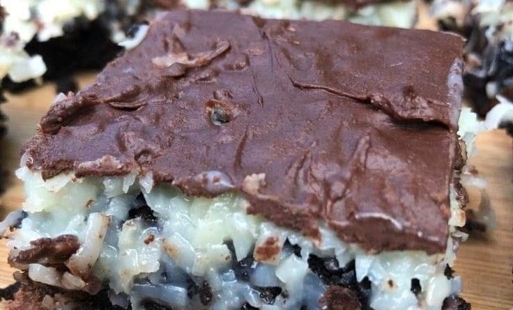 Ingredientes 1 mezcla para pastel (blanco o amarillo) ½ taza de cacao ½ taza de azúcar 2 tazas de chispas de chocolate 1 taza de jarabe de chocolate 1 envase de 8 oz de Cool Whip 2 tazas de coco rallado