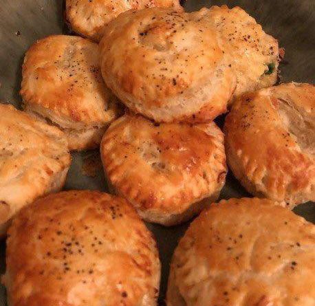 Ceapă călită cu cimbru, puțin vin alb, pui cremos, mazăre și morcovi, toate coapte sub un strat de chifteluțe făcute în casă. Este bogată în straturi de arome, dar modestă și veche în cel mai potrivit mod. Ajunge direct la inimă.