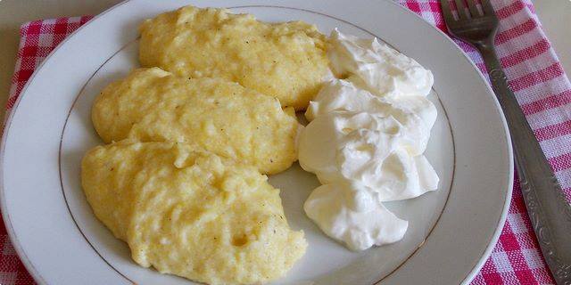 300-400 g brânză sau smântână 8 linguri făină de porumb 1 lingură grăsime nesfârâmată (dacă se folosește smântână, nu este necesară)