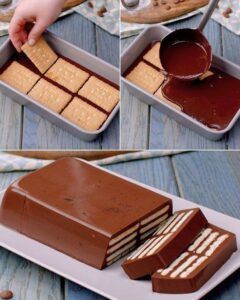 LAPTE 750 ml ZAHĂR 125 g PUDRĂ DE CACAO 25 g GELATINĂ 7 g CIORCHINI DE CIOCOLATĂ NEAGRĂ 125 g BISCUIȚI