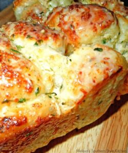 Ingrediente 16 chifle congelate albe, de exemplu Rhodes sau similare ½ ceașcă de unt topit ⅔ ceașcă de brânză Parmesan-Romano rasă, plus ¼ ceașcă, împărțită 1 linguriță de frunze de pătrunjel uscate 1 linguriță de pudră de usturoi ½ linguriță de sare ½ linguriță de busuioc uscat sau condimente italiene ½ linguriță de pudră de ceapă