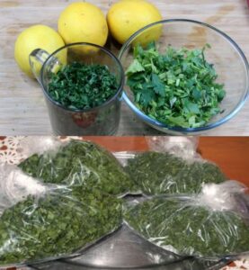 Apoi îl poți depozita și în congelator. Cum să faci? Mai întâi, este spălat și uscat bine astfel încât să fie mereu gata pentru utilizare. Taie pătrunjelul în bucăți subțiri sau mărunțește-l direct folosind tocătorul.