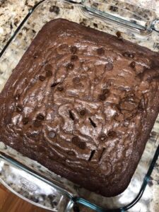 1 cană (2 bastoane) unt, topit și răcit 1 1/2 căni zahăr alb granulat 1/2 cană zahăr brun închis, ambalat 4 ouă mari 1 lingură extract de vanilie pur 1 cană făină de grâu 1 cană pudră de cacao dutch-process sau fără îndulcitor 1 linguriță sare kosher 1 1/4 căni fulgi de ciocolată, divizați