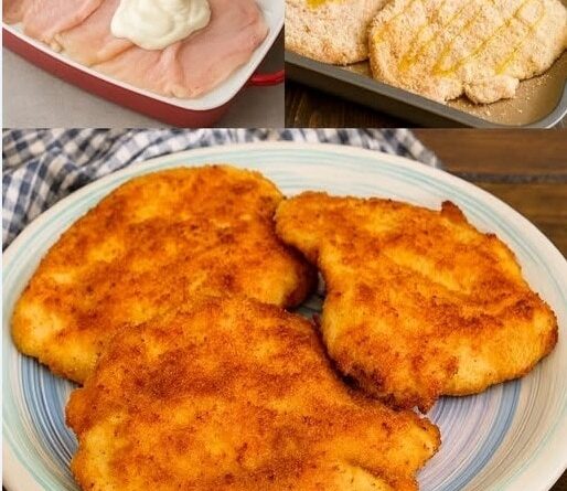 Coaceți în cuptorul preîncălzit timp de 20–25 de minute, până când șnițelele sunt gătite și crocante.
