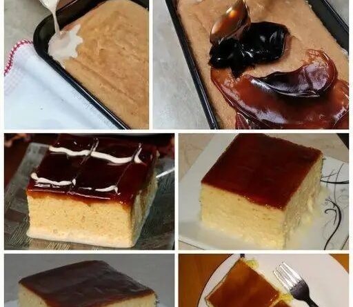 În tavă toarnă frișca lichidă, apoi așază pandișpanul cu partea de sus în jos (cea care a fost sus la copt să vină acum dedesubt). Lasă-l să stea aproximativ 10 minute, apoi amestecă laptele obișnuit cu laptele condensat și toarnă amestecul deasupra. Lasă puțin să se absoarbă bine laptele, apoi unge prăjitura cu crema de caramel. Pune la rece și bucură-te de acest desert minunat! -