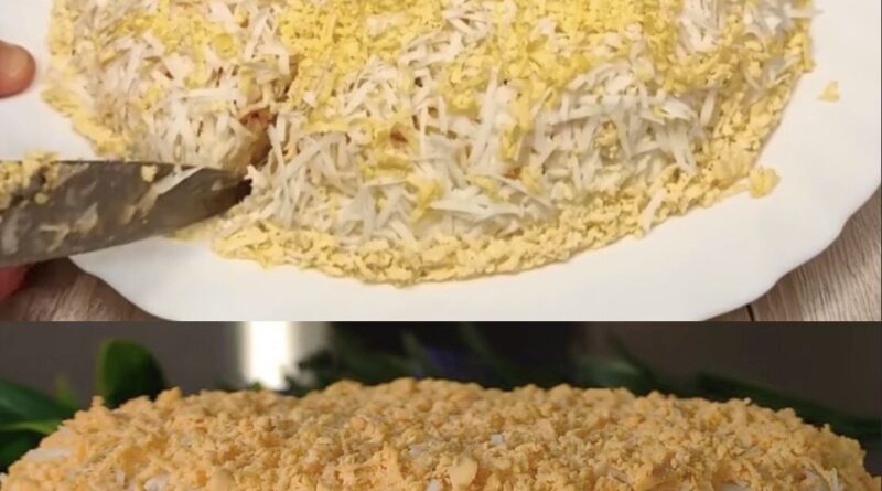 Salată stratificată „Afonja” cu carne de pui, ouă fierte, castraveți murați…