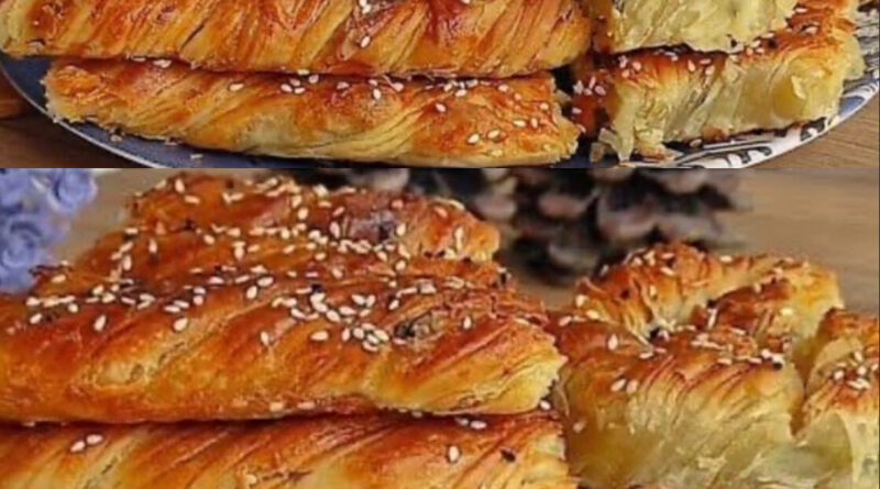 Plăcintă răsucită cu brânză… La fel ca burekul, sfărâmicioasă la atingere și foarte gustoasă! Aluatul subțire este umplut generos cu brânză sărată și verdeață, apoi rulată și răsucită pentru a crea straturi fragede. Se coace până devine aurie, iar aroma ei umple casa. Poate fi făcută din foi cumpărate sau făcute acasă; se servește caldă, acompaniată de iaurt sau o salată proaspătă, fiind perfectă pentru familie și dragi prieteni mereu.