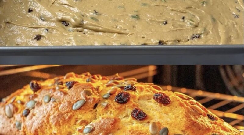 8. Presară deasupra câteva stafide și semințe de dovleac pentru decor și textură suplimentară.