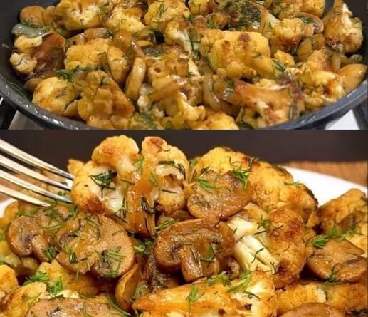 Îți lingi degetele! Conopidă gustoasă cu ciuperci, prăjită sau coaptă până devine aurie, aromată cu usturoi și pătrunjel — combinație irezistibilă pentru fiecare zi, simplă, rapidă și sănătoasă, ideală ca garnitură sau fel principal, perfectă pentru întreaga familie. Se pregătește ușor, se potrivește oricui mereu